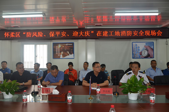 9月12日,懷柔區應急管理局、消防支隊組織區內施工單位在集團公司承建的一零一中學擴建項目舉行“防風險、保平安、迎大慶”在建工地消防安全現場會。懷柔區副區長李志遂、區應急管理局副局長呂寶紅、區建委副主任王建國、消防支隊副支隊長李慧捷到場參加。