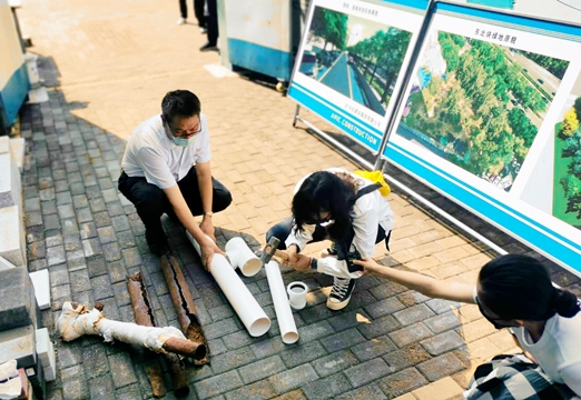 項目經理郭春華在采訪中對樓本體、室外景觀改造及項目整體情況做了介紹。針對舊改工程的項目性質,施工前項目部就派專人對小區業主進行“六治七補三規范”綜合整治內容的宣講,進行入戶民意調查。在施工改造過程中,項目全員極力解決遇到的各種問題,盡量減少噪音擾民,確保廚衛改造時業主們能有正常的生活用水、正常如廁,進出車輛不受道路改造影響安全出行,注重施工中的環境保護,嚴格遵守文明施工要求。