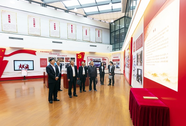 吳主任一行抵達集團后,陳先瑞董事長代表集團全體員工向吳主任一行的到來表示歡迎,并陪同前往集團展廳進行參觀,詳細介紹了集團公司發展歷程、產業項目成果、企業文化、發展規劃以及黨建工作。