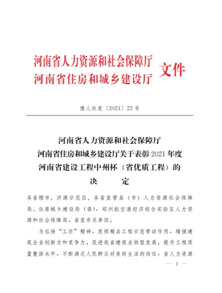 據(jù)悉,“中州杯”獎(jiǎng)是河南省建設(shè)行業(yè)工程質(zhì)量的最高榮譽(yù)獎(jiǎng)項(xiàng),本次評(píng)選范圍為河南省行政區(qū)域內(nèi)2017年6月30日—2020年6月30日期間完成竣工備案,并經(jīng)過一年以上使用沒有發(fā)現(xiàn)質(zhì)量缺陷和質(zhì)量隱患的新(擴(kuò))建工程。“中州杯”由河南省住房和城鄉(xiāng)建設(shè)廳組織評(píng)選,每年評(píng)選一次。